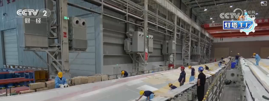 这里是湖南韶山这个的叶片工场,这个大师伙就是风机叶片。目前,这家“灯塔工场”最长能够出产118米的叶片。像如许的一只百米级叶片,出产时间也从本来的平均40多个小时,缩短到现正在的30个小时摆布。