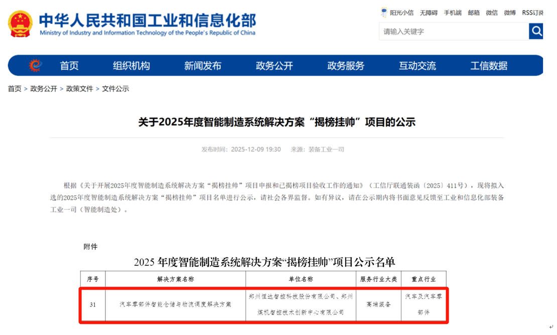 近日,中创智领集团旗下工业智能板块焦点企业——郑州恒达智控科技股份无限公司的“汽车零部件智能仓储取物流安排处理方案”入选。大河财立方记者领会到,该项目是河南省入选该范畴榜单的独一代表。